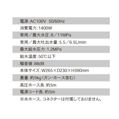 軽量で持ち運びやすく、パワフルな水圧で汚れをしっかり落とす家庭用高圧洗浄機です。