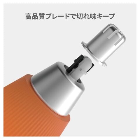 360°立体円形の刃先に、ステンレス鋼の鋭利な刃を組み合わせ、鼻毛をスピーディーにトリミング。