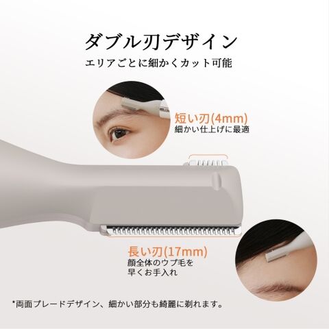 高精度研磨のステンレス刃が、細い産毛もすっきり処理。