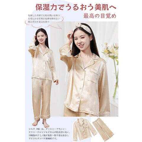 Utukky(ユーツキー) 最上位ランク(6Aランク) シルク パジャマ長袖(L・シャンパン) CXSYXBXYL 【返品種別A】
