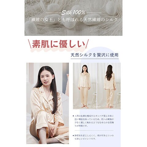 シルク特有の上品な光沢感があり、リラックスタイムを優雅なものに。
