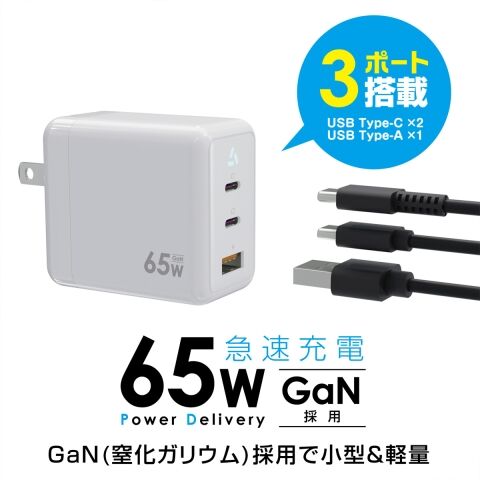 ●最大65W出力、コンパクトな3ポート搭載ACアダプター!