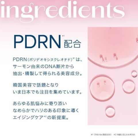 ■成分:水、PG、グリセリン、DNA-Na、アセチルヒアルロン酸Na、ヒアルロン酸Na、加水分解ヒアルロン酸、ヒアルロン酸ヒドロキシプロピルトリモニウム、ヒアルロン酸クロスポリマーNa、ナイアシンアミド、アゼロイルジグリシンK、サクシノイルアテロコラーゲン、レチノール、ガラクトミセス培養液、ビート根エキス、ハベルレアロドペンシス葉エキス、酵母エキス、セレブロシド、アラントイン、カミツレ花エキス、ツボクサエキス、カンゾウ根エキス、チャ葉エキス、イタドリ根エキス、ローズマリー葉エキス、オウゴン根エキス、トコフェロール、ミリスチン酸ポリグリセリル-10、トリエチルヘキサノイン、ジフェニルジメチコン、ジフェニルジメチコン、グルコシルルチン、シアノコバラミン、BG、1,2-ヘキサンジオール、ペンチレングリコール、パルミチン酸エチルヘキシル、PPG-26ブテス-26、PEG? 40水添ヒマシ油、キサンタンガム、カルボマー、水酸化K、EDTA-2Na、クエン酸、クエン酸Na、フェノキシエタノール