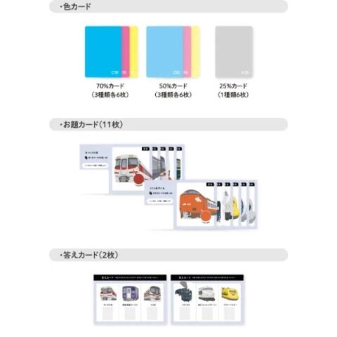 半透明のカードを重ねて、電車や新幹線の色を作ろう!