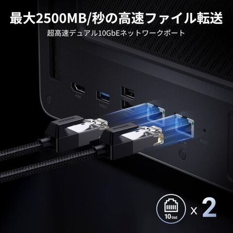 - 最大ストレージ容量:196TB (6x 30TB + 2x 8TB)