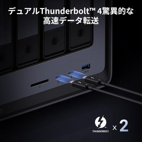 2つの10GbEポート搭載で、最大2500MB/sの高速転送を実現。大容量データを瞬時にやり取りし、業務効率を大幅にアップ! さらもIntel Core i5プロセッサー搭載による10コア12スレッドの強力な処理能力で、多様なタスクをスムーズにこなします。Thunderbolt 4ポートで、最大40Gbpsの高速データ転送が可能。大容量ファイルの転送や4K/8K動画編集も快適に行えます。