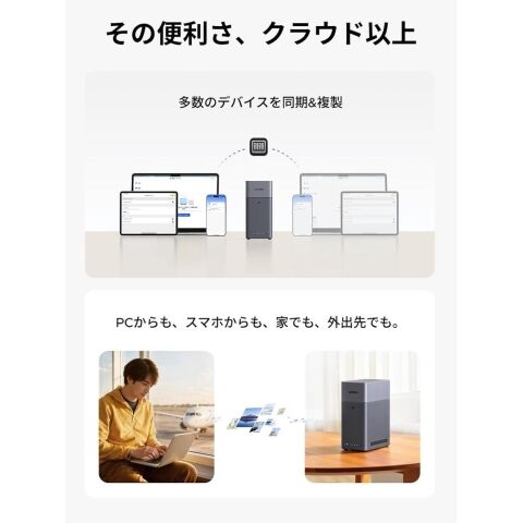 個人やご家庭での利用にぴったりのコンパクト設計。写真や動画の自動バックアップを行い、スマホやパソコンからかんたんにアクセスできます。データ管理を楽に。初めてNASを導入する方にもおすすめ!