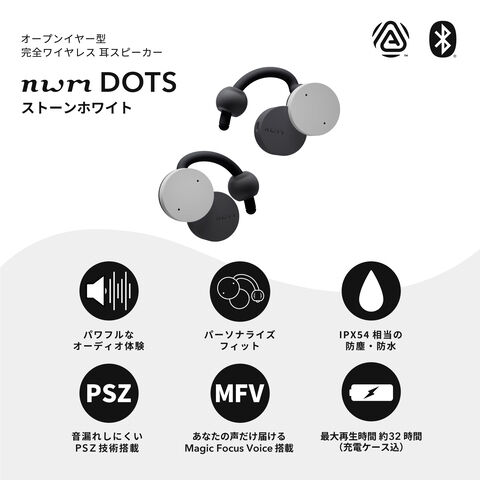 ヌーム オープンイヤー型 完全ワイヤレス 耳スピーカー(ストーンホワイト) nwm DOTS MBE002WA 【返品種別A】