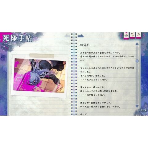 物語の鍵を握るのは、記憶と自我を失いかけている栞が、自身の新しい思い出(死様)を記録していく「死様手帖」。