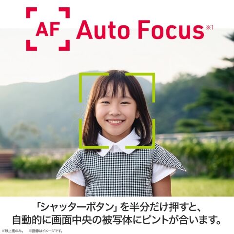 「シャッターボタン」を半分だけ押すと、自動的に画面の中央にピントが合います。