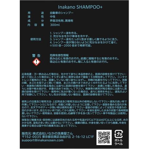 いなかの洗車屋さん Inakano SHAMPOO+ 300ml 無香料 中性カーシャンプー INAKANOSHAMPOO 【返品種別A】