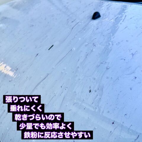 ◆モコモコ洗って楽しめる高発泡仕様。鉄粉と同時に軽度な油汚れも除去可能。トロトロ粘度で液剤が長く留まる高滞留。