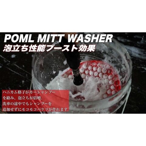 表面のヘキサゴングリルが、シャンプーの泡立ちネットの役割になり、カーシャンプーを節約しながらいつでもモコモコ泡のバケツシャンプーが作れます。