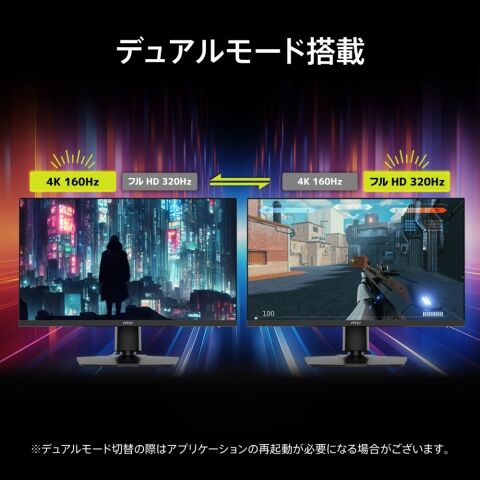 - 最大リフレッシュレート : 160Hz(フルHD設定時:320Hz)