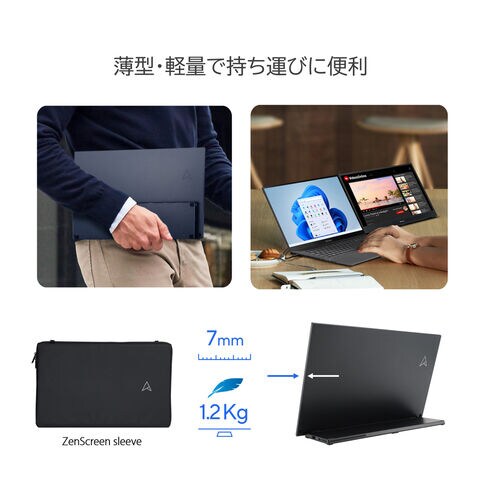 重さわずか1.2kg、端部分の厚さもわずか7mmと超薄型で、どんなバッグにもすっぽり収まります。場所を選ばず、生産性とエンターテイメントの幅を広げます。
