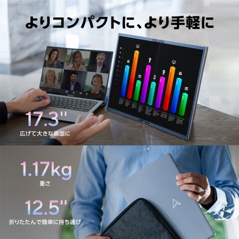 ASUS|エイスース モバイル液晶ディスプレイ(17.3型/OLED/2560×1920/5ms/MiniHDMI/USB Type-C/3年保証)(ブラック) ZenScreen Fold MQ17QH 【返品種別A】