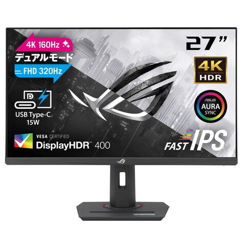 ASUS|エイスース ゲーミング液晶ディスプレイ(27型/Fast IPS/4K UHD 3840x2160/FHD320Hz・4K160Hz/1ms/HDR400/HDMI2.1/DP1.4/USB Type-C/VESA/3年保証)(ブラック) ROG Strix XG27UCG 【返品種別A】