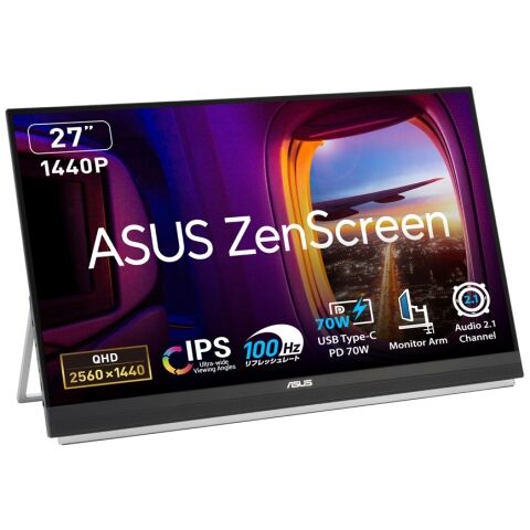 ASUS|エイスース モバイル液晶ディスプレイ(27型/IPS/WQHD 2560×1440/5ms/HDMI/USB Type-C/VESA/3年保証)(ブラック) ZenScreen MB27ACF 【返品種別A】