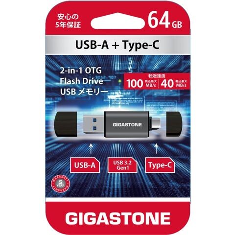 Gigastone|ギガストーン 2in1 USBメモリー 64GB USB-A+Type-C GJU3-AC44GY-64GB-1PK 【返品種別A】