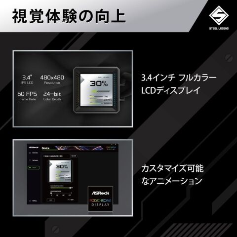 ASRock|アスロック 水冷一体型CPUクーラー Steel Legend Dark 360 LCD(ブラック) STEELLEGENDD360LCD 【返品種別B】