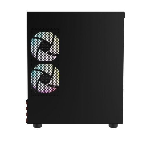 右サイドに120mm ARGB Lite リバースファンを2基、リアに120mm ARGB Liteファンを1基搭載。静音性に優れ、マザーボードと同期したライティングで、美しい視覚効果と安定した冷却を実現します。