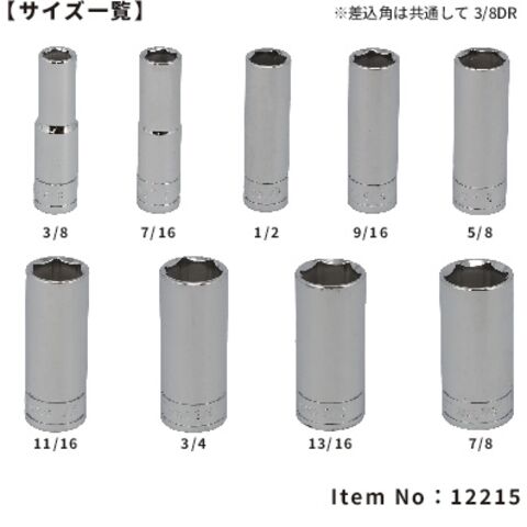 - セット内容:3/8・7/16・1/2・9/16・5/8・11/16・3/4・13/16・7/8″