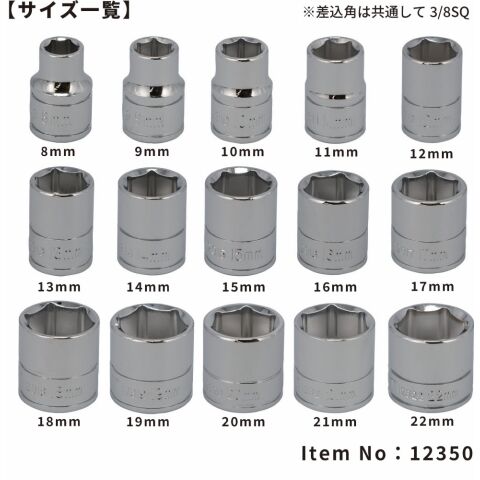 ◆セット内容:3/8”SQソケット:8・9・10・11・12・13・14・15・16・17・18・19・20・21・22mm(12308・12309・12310・12311・12312・12313・12314・12315・12316・12317・12318・12319・12320・12321・12322)