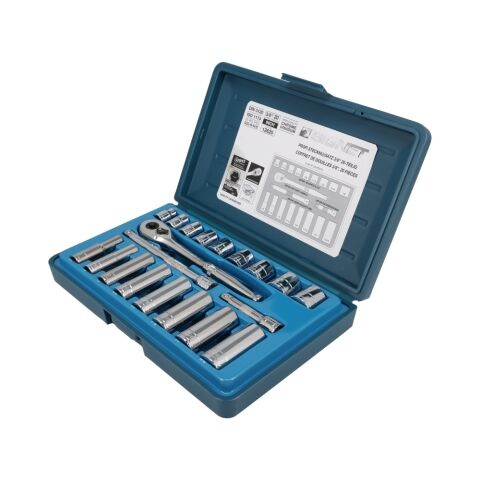 ◆セット内容:ソケット:3/8・7/16・1/2・9/16・5/8・11/16・3/4・13/16・7/8”(12101・12102・12103・12104・12105・12106・12107・12108・12109)、ディープソケット:3/8・7/16・1/2・9/16・5/8・11/16・3/4・13/16”(12201・12202・12203・12204・12205・12206・12207・12208)、ラチェットハンドル(12532)、エキステンションバー:75・150mm(12506・12507