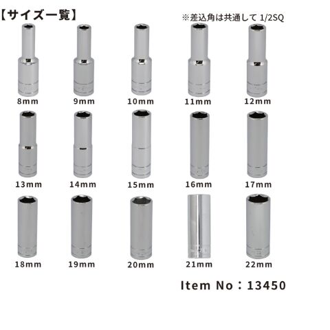 ◆セット内容:ディープソケット:8・9・10・11・12・13・14・15・16・17・18・19・20・21・22mm(13408・13409・13410・13411・13412・13413・13414・13415・13416・13417・13418・13419・13420・13421・13422)