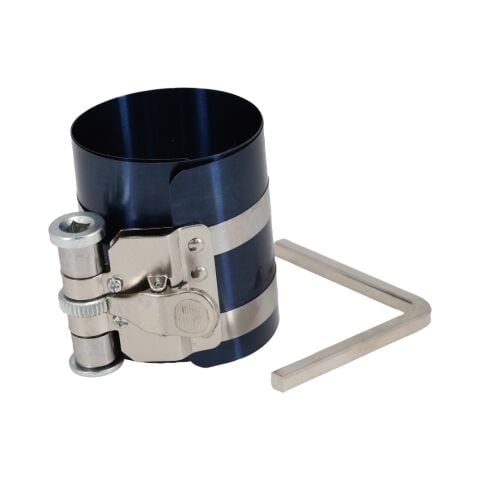 ◆ピストンのリング部分に巻きつけ締めこんでリングを圧縮し、プラスチックハンマー等で軽く打ち込んで下さい。