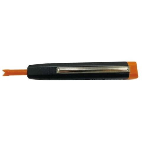 ◆V字溝キャップで、安全に配線を通電させる事ができます。※V字キャップについて被覆配線を対象とする場合、V字溝キャップを装着することで安全に針を刺すことができます。