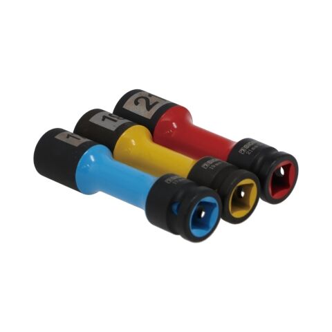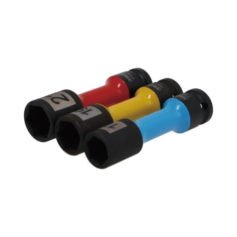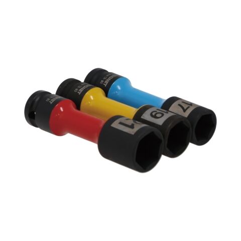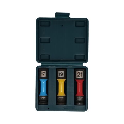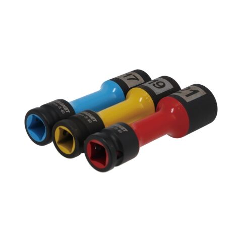 ◆セット内容:ホイルナット用薄肉インパクトソケット:17(青)・19(黄)・21(赤)mm