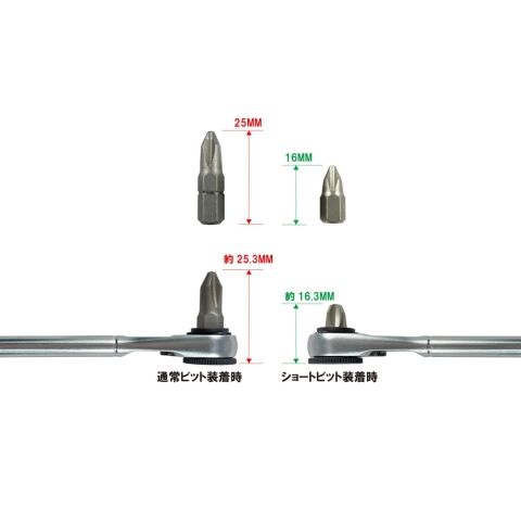 ◆ショートビットとショートソケットで狭い場所に最適。