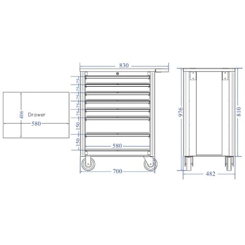 - 外形寸法:間口830×奥行482×高さ976mm