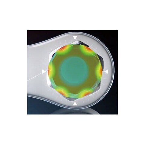 ナットのセンター部分に突起が引っかかります。この部分が力点になり、なめたネジをまわせる設計です。
