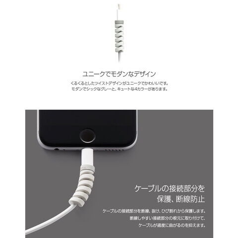 ◆環境に優しい柔軟性の高いシリコンを使用し、ツイスト状にデザインしています。変形しにくく、ケーブルから外れることがなく、安心してお使いいただけます。