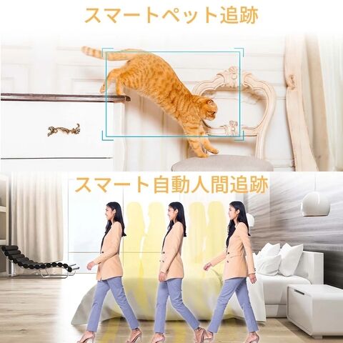 ペットや人物に合わせて、カメラが自動的に水平回転・垂直傾斜し、その動きを追尾します。