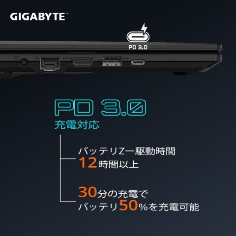 - バッテリー/駆動時間 : リチウムポリマー 76Wh / 約12時間