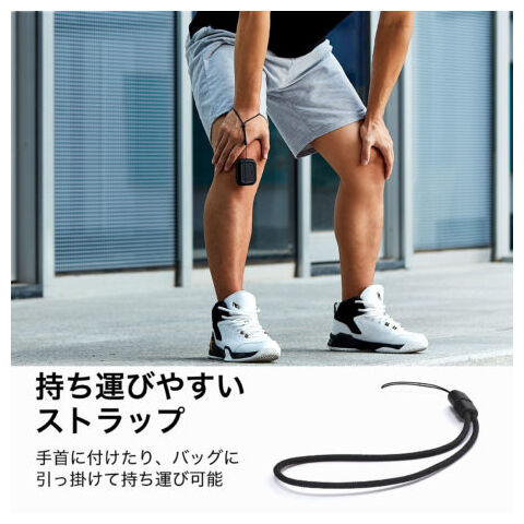 手首に付けたりバックに引っ掛けて持ち運び可能なストラップを付属。