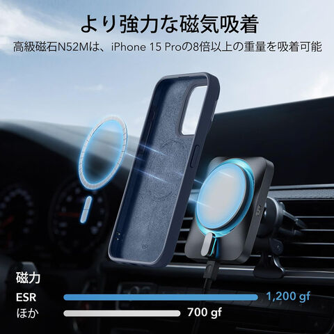 1200 gの吸着力を持つ強力な内蔵磁石により、素早く簡単にワンタッチでワイヤレス充電が可能で、MagSafeアクセサリーを確実に吸着します。