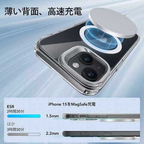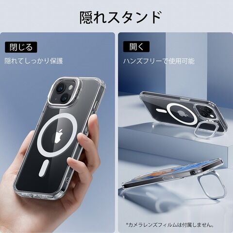 ESR iPhone 15用 MagSafe対応 隠れスタンド付きハイブリッドケース(クリア) Classic Hybrid Case with Stash Stand (HaloLock) ESR358 【返品種別A】
