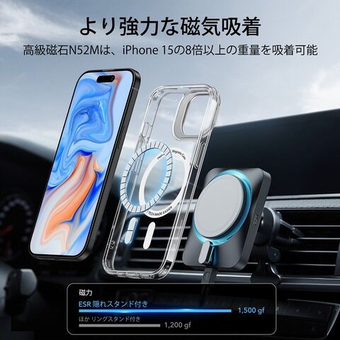 ESR iPhone 15用 MagSafe対応 ハイブリッドケース Classic Hybrid Case with Stash Stand (HaloLock) Clear Blue(クリアブルー) ESR484 【返品種別A】のレビュー