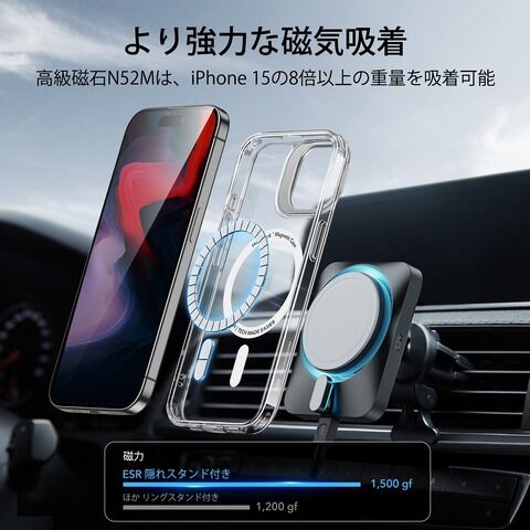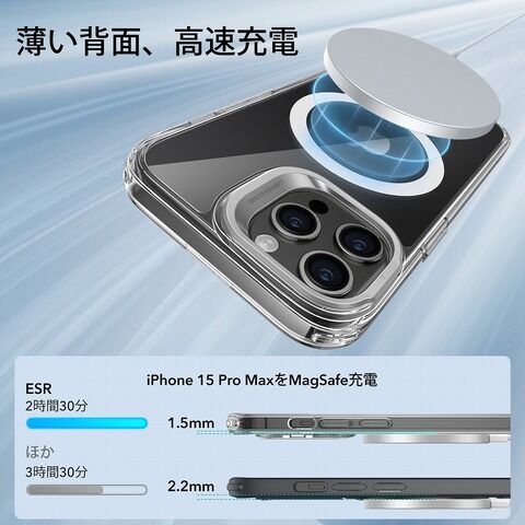ESR iPhone 15 Pro Max用 MagSafe対応 ハイブリッドケース Classic Hybrid Case with Stash Stand (HaloLock) Clear Grey(クリアグレー) ESR487 【返品種別A】のレビュー