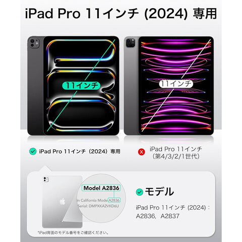 iPad Pro 11インチ M4(2024、第5世代)専用です。モデル:A2836、A2837。他のiPadモデルと互換性がありません。