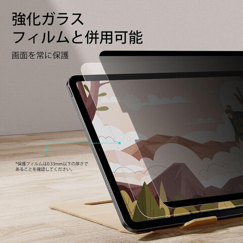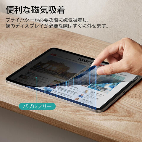 画面のプライバシーを保護したい時は磁気フレームでiPad画面にワンタッチで取り付けられ、使用後は簡単に取り外して、元の画面が楽しめます。