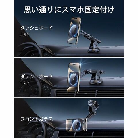 再利用可能な吸盤と自由に調整可能なボールジョイントでダッシュボードやフロントガラスに最も快適な角度でしっかりと取り付けができます。