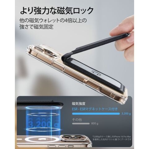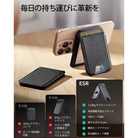 このMagSafeウォレットは3200gの磁気吸着力にアップグレードされ、オフィシャルブランドの4倍の強度で、ウォレットスタンドをしっかりとマグネットで吸着固定します。
