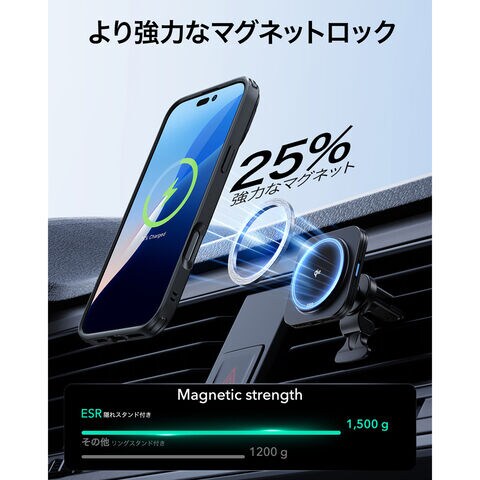 1.500gの吸着力を持つ強力な内蔵磁石により、素早く簡単にワンタッチでワイヤレス充電が可能で、MagSafeアクセサリーを確実に吸着します。
