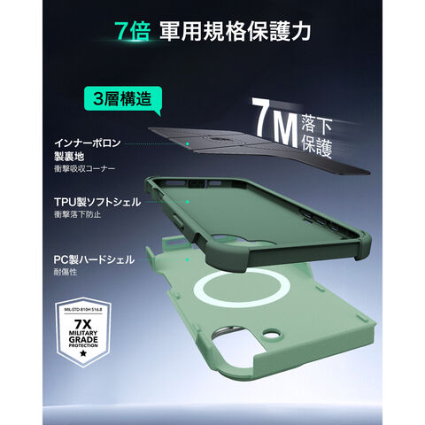硬いTPEとPCのアウター部による3層構造は外側の衝撃や傷から保護し、クッション性の高いソフトなインナー部は内側の衝撃吸収を行い、最大約 7メートルの高さからの落下からもスマホを守ります。