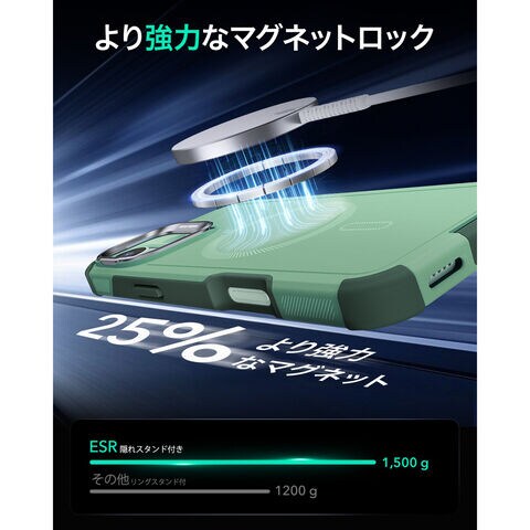1500gの保持力を持つ強力な内蔵マグネットが、より速く、より簡単な瞬間吸着ワイヤレス充電と、あらゆるMagSafeアクセサリーへの安全な磁気吸着固定を可能にします。